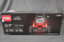 Toro 21" Stripe Flex-Force Max 60V RWD self-propelled electric mower model 21620. Appears to be new in box.
