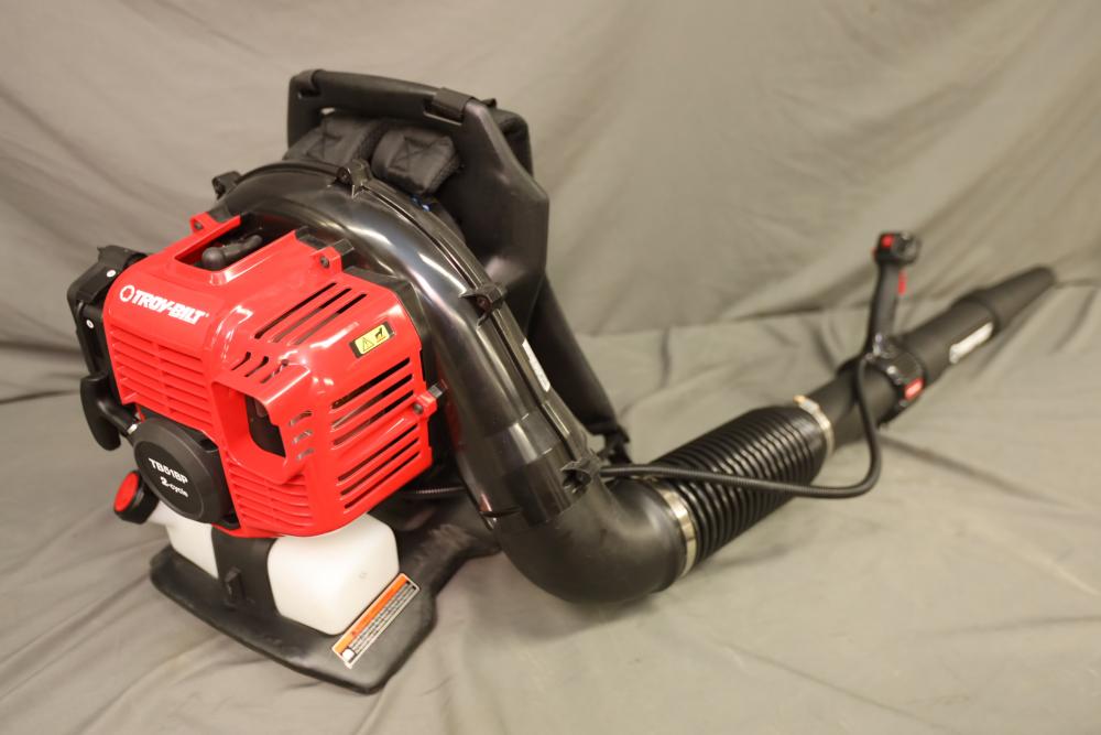 Troy-Bilt TB51BP backpack gas leaf blower with 2-cycle 51cc engine and tube mounted variable speed throttle. Runs and operates.