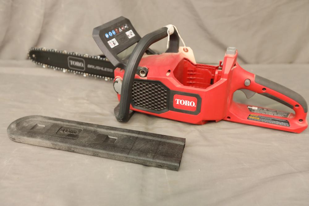 Toro 60V Max 16" cordless electric brushless chainsaw model 51850. Runs and operates but does not include chain, battery or charger.