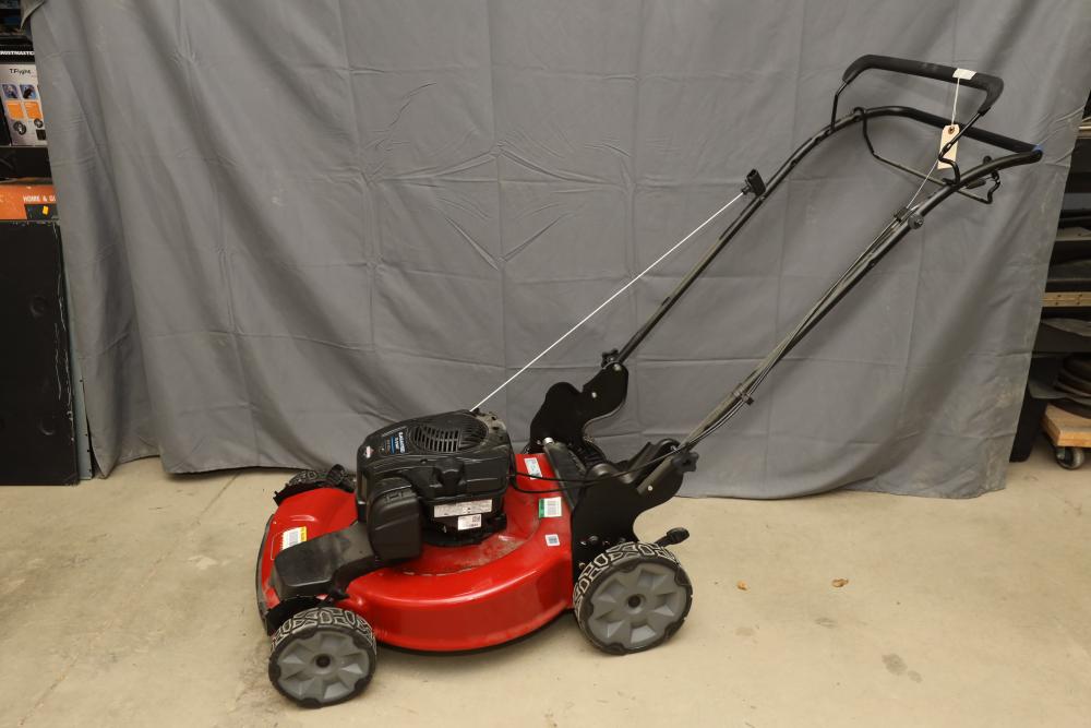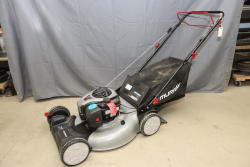 Murray self-propelled FWD gas-powered 22" mower model MNA153003 with Briggs and Stratton E550 140CC engine and bag attachment. Runs and operates.