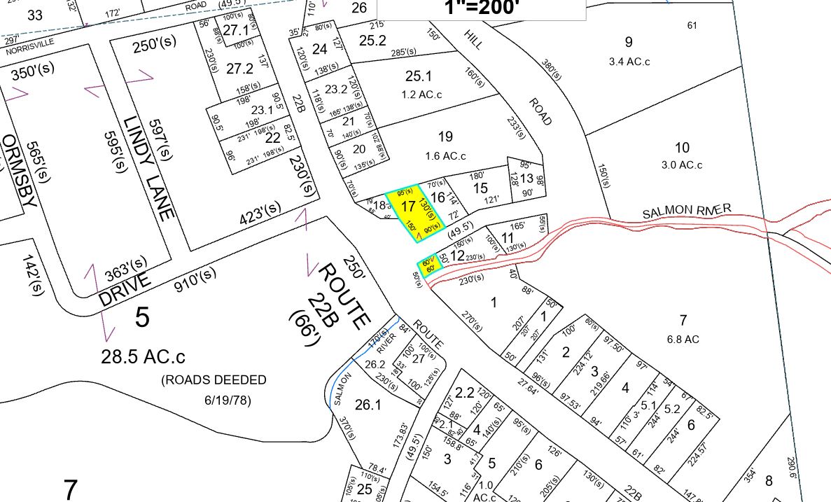 | Single family residence, 1.5 story, Old style, built 1900+/-, 1232+/- sq. ft., 2BR/1BA, garage. Waterfront on Salmon River. Tentative assessment/full market value: $ 56400 |