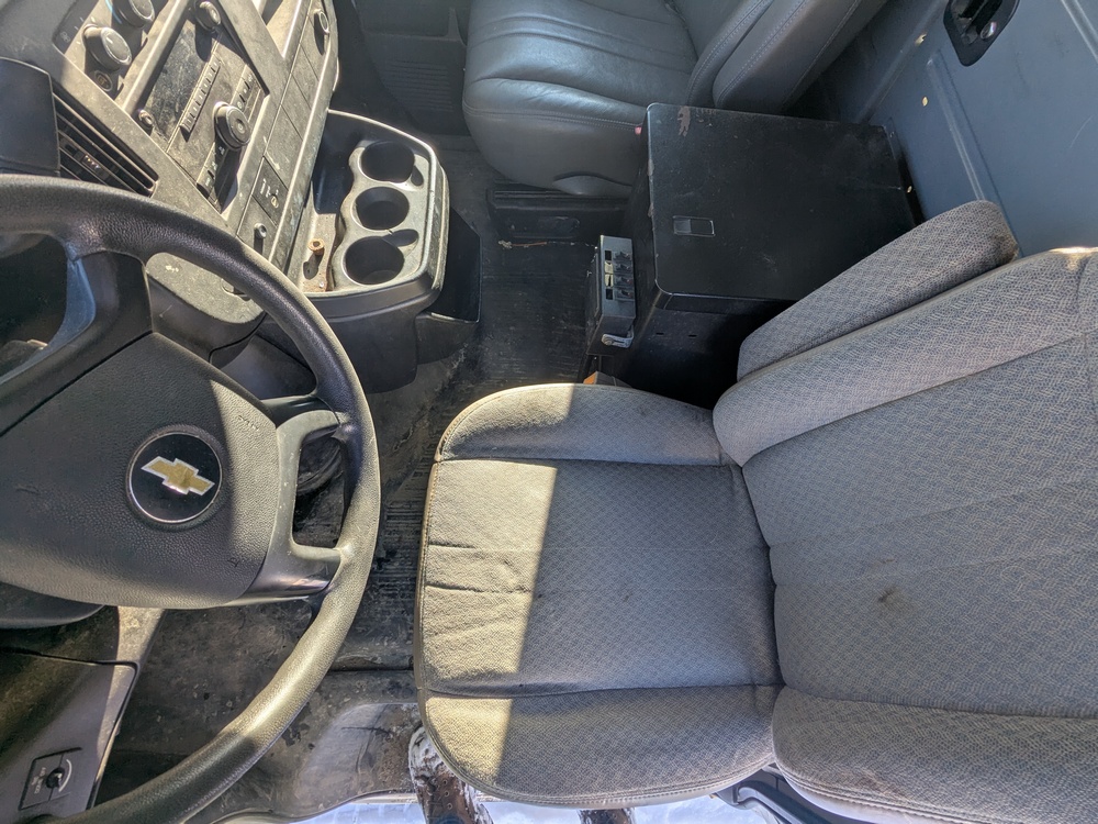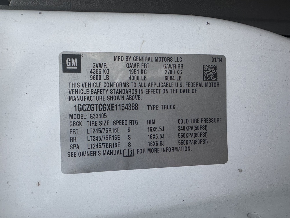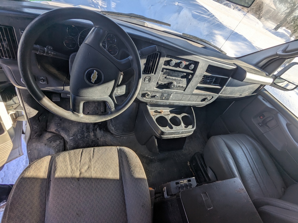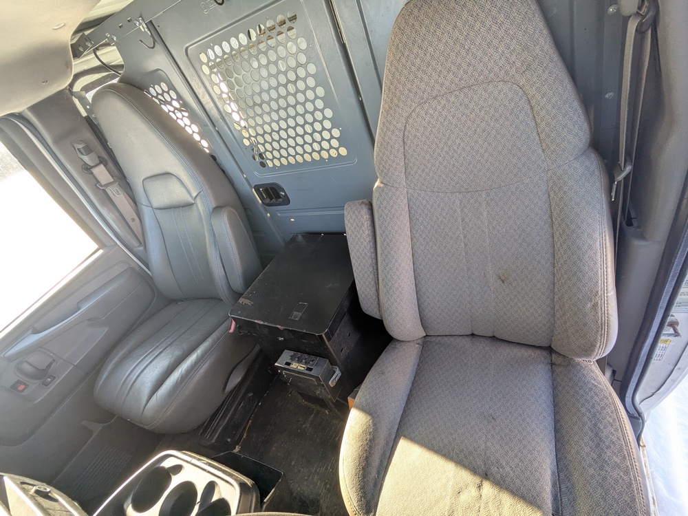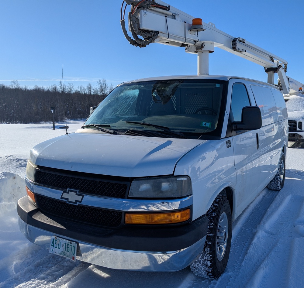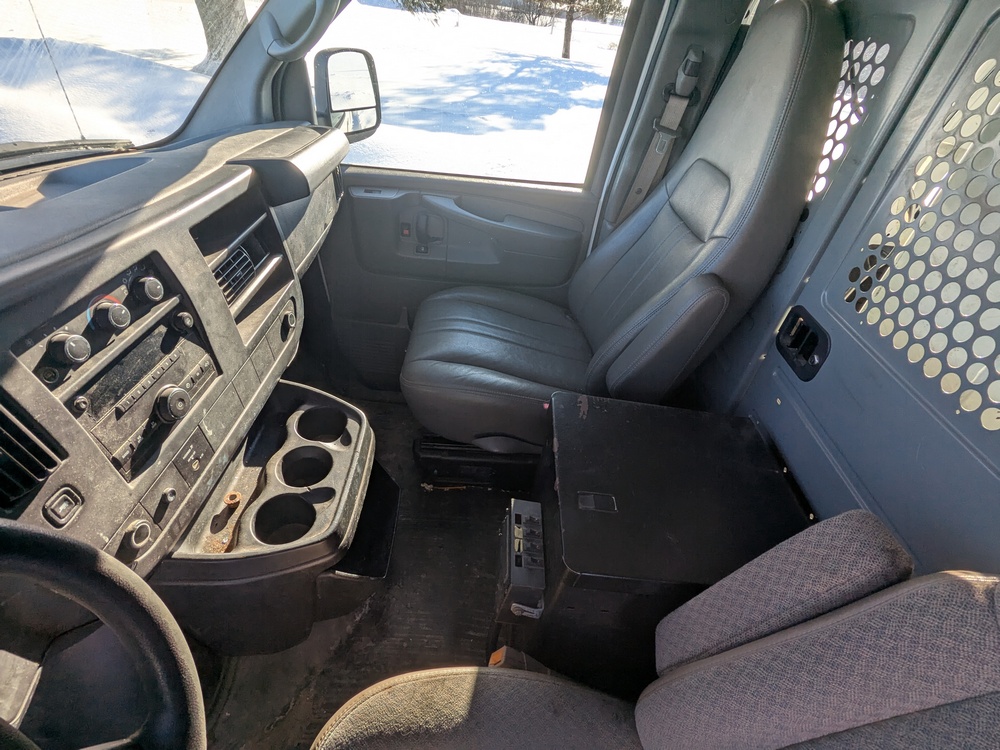 2014 Chevrolet Cargo Bucket Van. VIN: 1GCZGTCGXE1154388. Model G33405, Dur-A-Lift Model V34 32ft Uninsulated boom, odometer reading: 171,183. Runs, drives and operates as intended, key and Clear Title on hand.