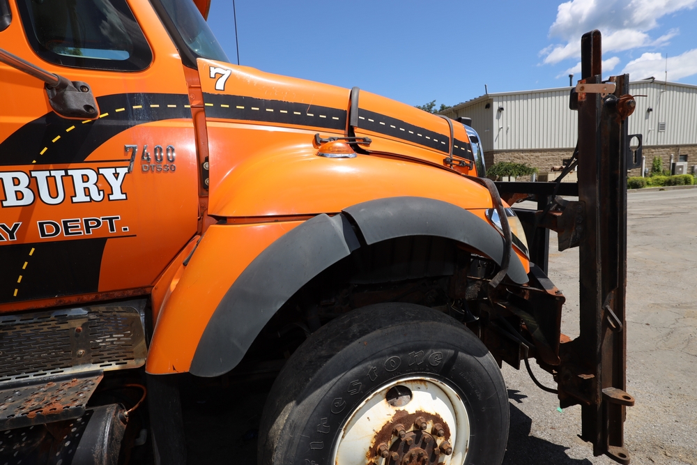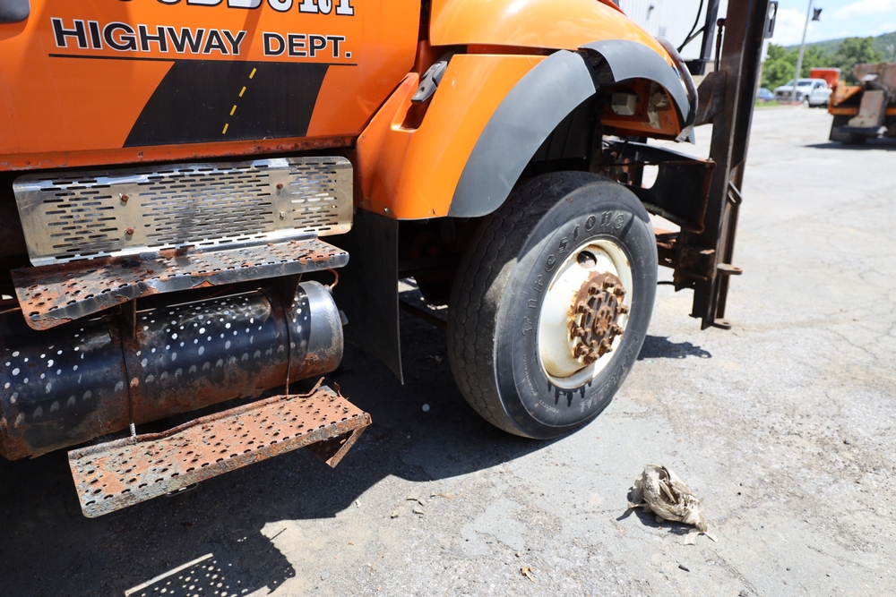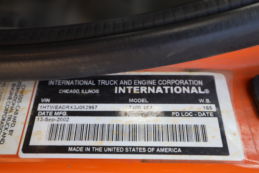 2003 International WorkStar 7400 Dump Truck. VIN: 1HTWEADRX3J052957. Body: Chassis 2D. Engine: 8.7L I6 DI Diesel. Allison transmission. Odometer reading: 42156. Hook system for different bodies, includes additional salter body. Seller reports: Runs, drives, 4x4 doesn’t work, NO front differential, Needs turbo oil supply lines, comes with front axles and drive shaft(out of truck). Includes Plow and wing plow. Title & key available.