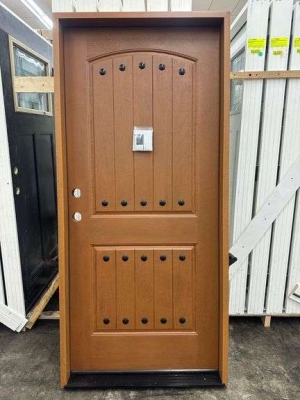 Medium Walnut, Exterior Fiberglass, 200 PP Plank Pannel W/Clavos, 36"x80", RH. By Sure Rock, 5-1/4" Jamb, BK Hardware, Net Frame: 37-1/4"x81"x5-1/4", Single, MH Texture, Pre-Hung, Grade: 1 Weight: 95. Sold by: Door. Sold as: Price x Quantity.