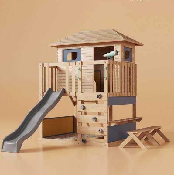 Complete Kids Playset All Hardware Is Included. Ages 3-11. This Set Includes 5 Pieces. Extra Large Hut, Rock Climbing Wall, Slide & Play Telescope. Grade: A Weight: 440. Sold by: Set. Sold as: Price x Quantity.