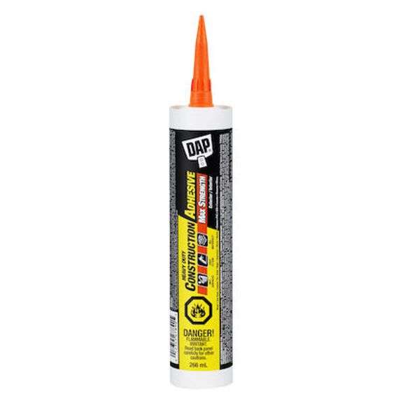 White 266ml HD Max Construction Adhesive Interior/Exterior. By: DAP, Polyurethane Strength, Meets/Exceeds ASTM D3498/C557, Application Range: 0-120F 12 Per Box, 2 Boxes, Grade: A Weight: x. Sold by: Tube. Sold as: Price x Quantity.