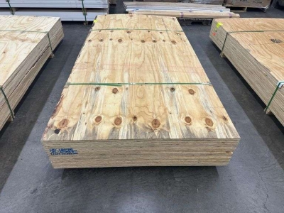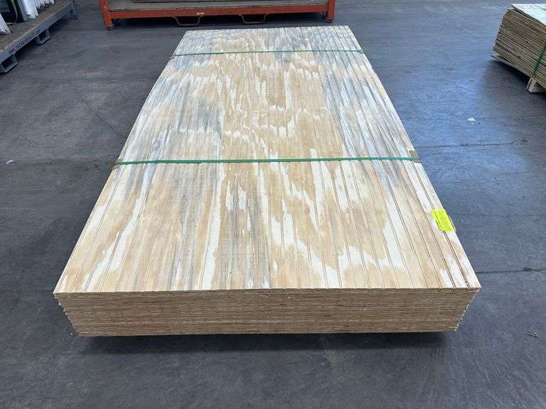 Southern Yellow Pine Plywood Siding 3/8"x48"x96" 1.6" OC. By Roy O Martin, Shiplap, Double Beaded, Grade: Shop *Condition Notes: Broken Tabs, Fork Damage, Please See Photos* Weight: 875. Sold by: Sheet. Sold as: Price x Quantity.