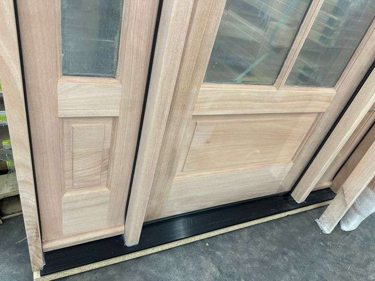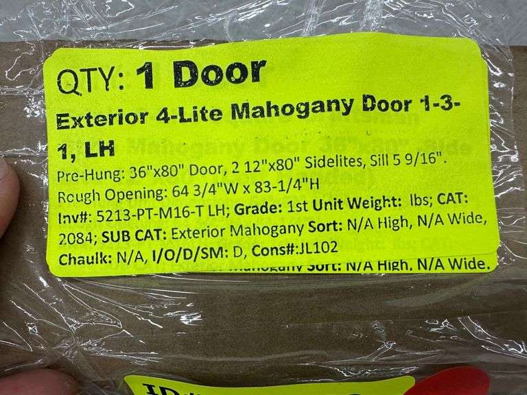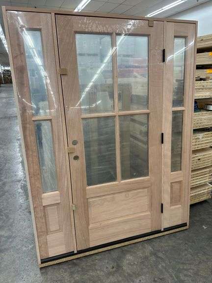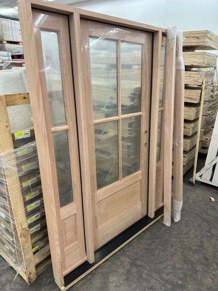 Exterior 4-Lite Mahogany Door 1-3-1 LH. Pre-Hung: 36"x80" Door, 2 12"x80" Sidelites, Sill 5 9/16", Rough Opening: 64 3/4"Wx83 1/4"H, Grade: 1st Weight: x. Sold by: Door. Sold as: Price x Quantity.