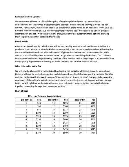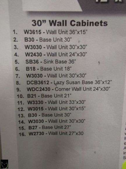 Stone Harbor Gray Kitchen Cabinet Set 12'x15'. Standard Layout, 30" Walls, By GHI, Additional pieces may be available for order to the high bidder. Additional cabinets ship boxed, ready to assemble. -3/4” Solid Wood Face Frame -High Density Fiberboard Shaker Style Door and Drawer Front -1/2” Plywood Box Construction -5/8” Plywood Shelves -Full Overlay Doors and Drawer Fronts -Solid Wood Dovetail Drawer box -Soft Close Full Extension Drawer Gliders -Soft Close Doors -6-Way Adjustable Concealed Hinges. Enclosed in each cabinet set will be a Build Sheet which lists the individual cabinets in each set. As the cabinets are palletized each cabinet will be checked off and signed by our staff member to ensure that the set is complete at the time of pick-up. Please keep this Build Sheet on hand because it will be required if there is an issue with your cabinet set. Cabinet issues will not be addressed without this build sheet. Weight: x. Sold by: Set. Sold as: Price x Quantity.