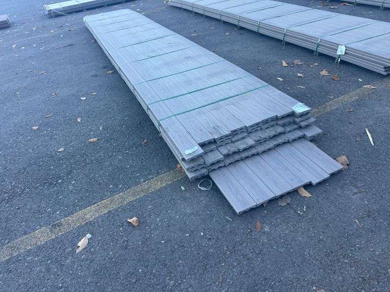 Grey Composite Decking 5/4"x6"x20'. By Fiberon, PVC Cap, Scalloped Bottom, Grooved Edge, Actual Dimensions 1"x5 1/4"x20', Grade: B Weight: 2000. Sold by: Linear Foot. Sold as: Price x Quantity.