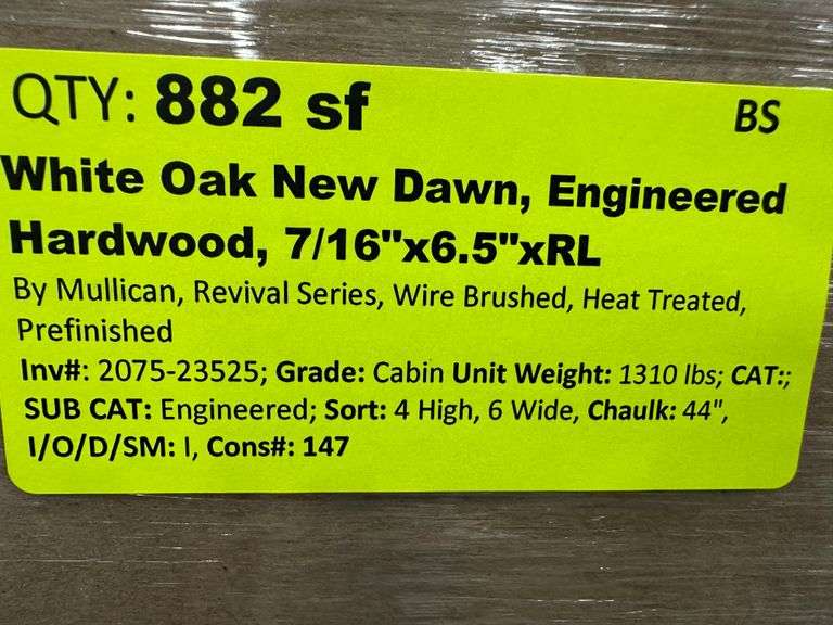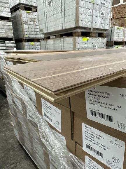 White Oak New Dawn Engineered Hardwood 7/16"x6 1/2"xRL. By Mullican, Revival Series, Wire Brushed, Heat Treated, Prefinished Grade: Cabin Weight: 1310. Sold by: Square Foot. Sold as: Price x Quantity.