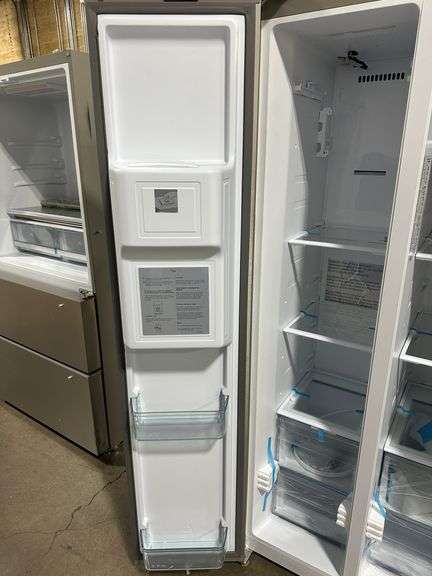 Whirlpool Side-by-Side Refrigerator Freezer Model FFRBI184430SB. This is a Whirlpool side-by-side refrigerator and freezer unit, model FFRBI184430SB. The appliance features a stainless steel finish with an external water and ice dispenser on the freezer door. It has minor cosmetic damages including scuffs on the sides and small dents on the front of the fridge. The refrigerator has been tested and is confirmed to be in working condition. This refrigerator offers modern styling and practical features suitable for everyday kitchen use. Its side-by-side design allows convenient access to both fridge and freezer compartments, ideal for households looking for efficient food storage. This is a liquidated product. The Auction Company makes no express or implied representations or warranties of any kind regarding the Product. Any pre-existing retail, wholesale or manufacturer warranties will not transfer with the sale of this Product unless expressly stated otherwise on this page. The Buyer accepts the Product in as-is condition, with all faults. Weight: . Sold by: Piece. Sold as: Price x Quantity.