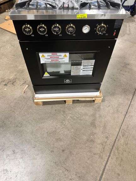 Marco 30 in. Gas Range Black & Antique Brass, 4-Burners 37,000-BTU, 4.32 Cu. Ft. Convection Oven. Bring bold design and culinary power to your home with the Marco 30 in. Alta Qualita Gas Range in sleek black with antique brass accents. Whether you're simmering delicate sauces or searing a juicy steak, the 4-sealed burners, including a dual-ring burner with 37,000-BTU output, meet every need. The 4.32 cu.ft. convection oven guarantees evenly baked cookies and perfectly roasted vegetables. Durable cast iron grates provide stability, while smooth friction hinges and a triple-layer oven door ensure safety and efficiency. Reliable and visually striking, the Marco makes every meal an occasion. Lower the cost of living with Forno. Weight: . Sold by: Piece. Sold as: Price x Quantity.