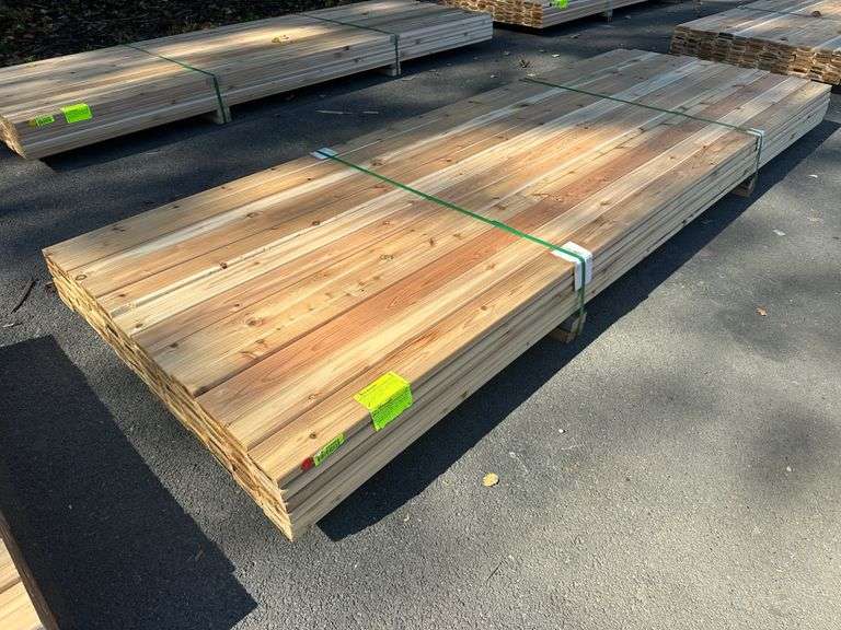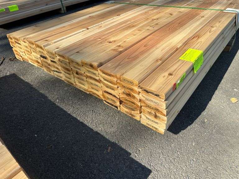 Western Red Cedar Decking 5/4"x4"x10'. #1 Faced One Side, Actual Dimensions: 1"x3 1/2"x10', 300 Board Foot, Grade: 1F, *Condition Note: Chipped Edges, Please See Photos* Weight: 890. Sold by: Board. Sold as: Price x Quantity.