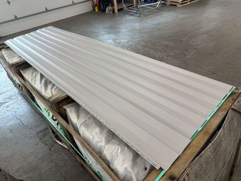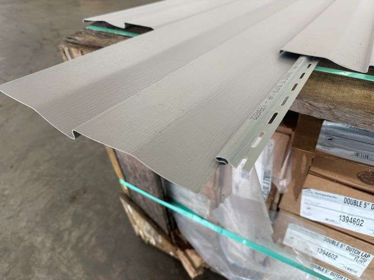 Flint D5D Vinyl Siding 12'. Made by Georgia Pacific, Vision Pro Series, Made in U.S.A., 20 Pieces 2 per Square Box, Grade: B *Condition Note: Damaged Crate, Bottoms are falling/wet, SEE PHOTOS* Weight: 1480. Sold by: Square. Sold as: Price x Quantity.