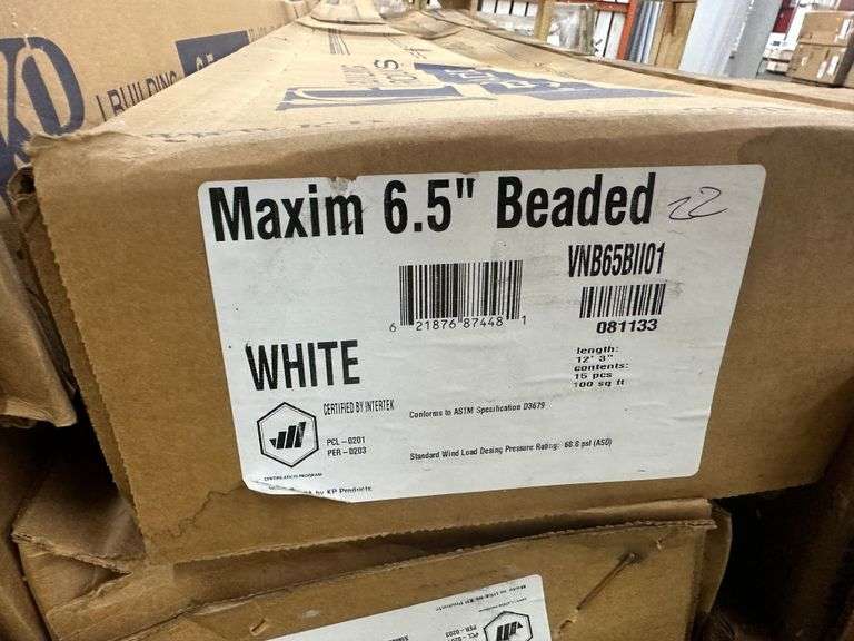 White Maxim Bead Vinyl Siding 12' 3". By: KP Vinyl Siding, 10 Pieces, 1 Square Per Box, Grade: 1st Weight: 2100. Sold by: Square. Sold as: Price x Quantity.