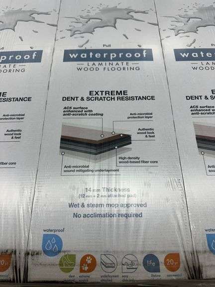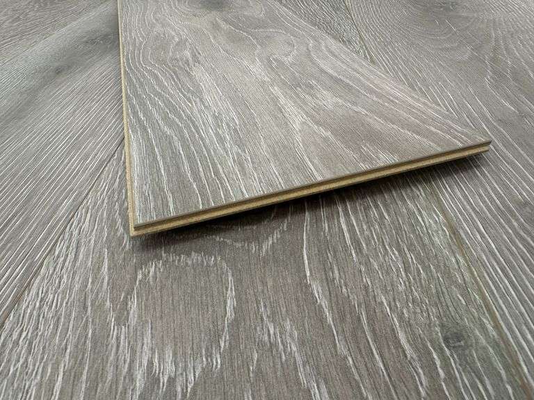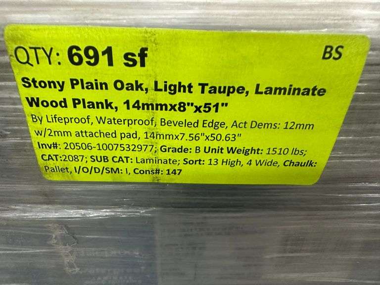 Stony Plain Oak Light Taupe Laminate Wood Plank 14MMx8"x51". By Lifeproof, Waterproof, Beveled Edge, Actual Dimensions: 12mm with 2mm Attached Pad, 14MMx7.56"x50.63" Grade: B Weight: 1510. Sold by: Square Foot. Sold as: Price x Quantity.