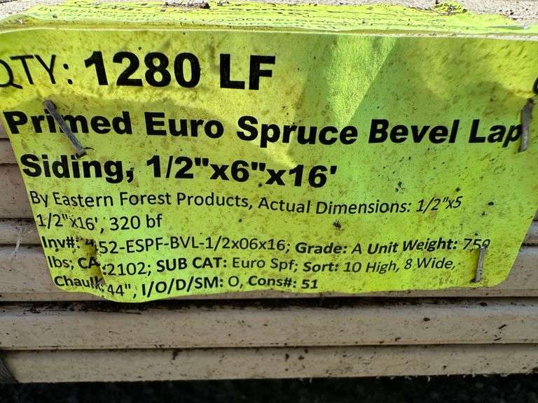 Primed Euro Spruce Bevel Lap Siding 1/2"x6"x16'. By Eastern Forest Products, Actual Dimensions: 1/2"x5 1/2"x16' 320 Board Foot, Grade: A Weight: 750. Sold by: Linear Foot. Sold as: Price x Quantity.