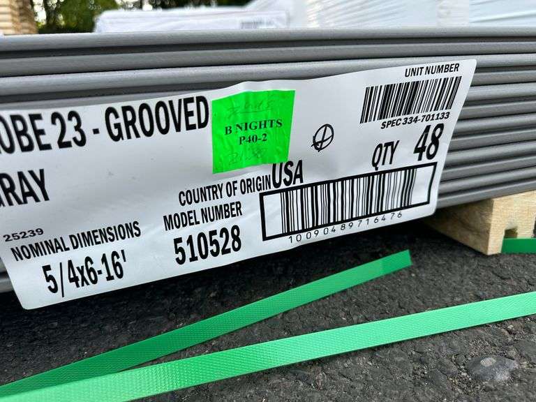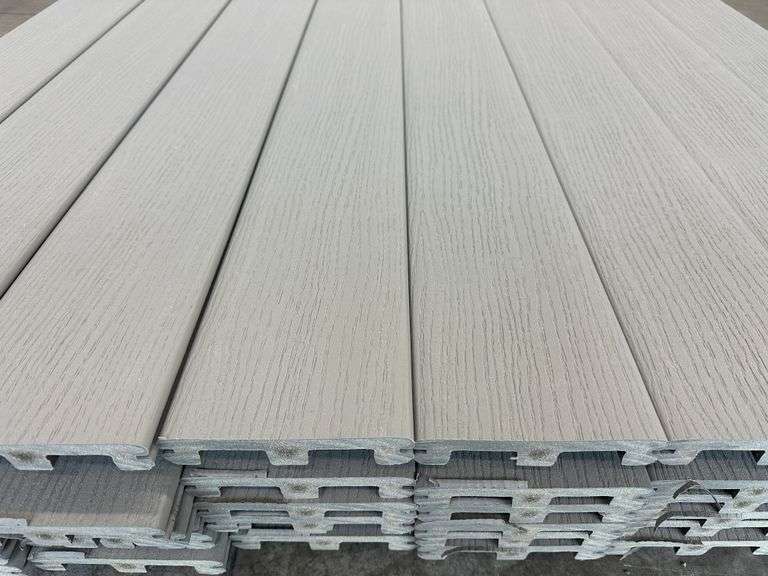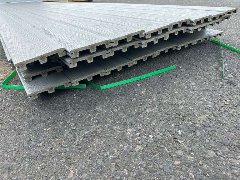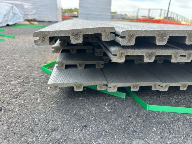 Gray Composite Decking 5/4"x6"x16'. By Deckorators, Actual Dimensions: 1"x5 1/2"x16', Scalloped Bottom, Grooved Edge, Grade: B Weight: X. Sold by: Linear Foot. Sold as: Price x Quantity.