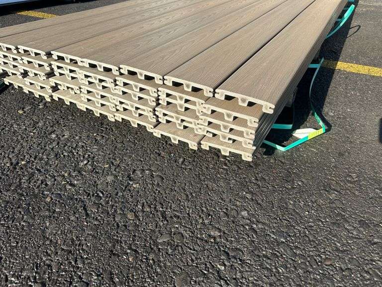 Brown Composite Decking 5/4"x6"x16'. By Deckorators, Actual Dimensions: 1"x5 1/2"x16', Scalloped Bottom, Grooved Edge, Grade: B Weight: X. Sold by: Linear Foot. Sold as: Price x Quantity.