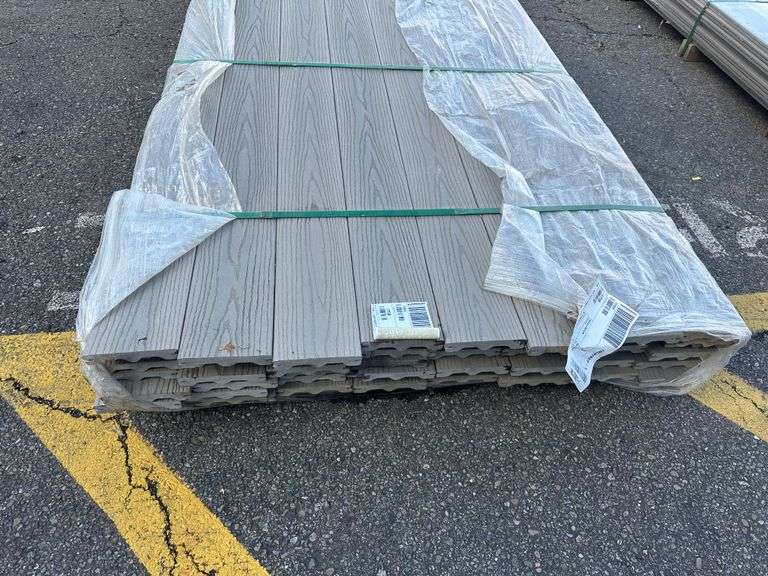 Grey Composite Decking 5/4"x6"x16'. By Fiberon, PVC Cap, Scalloped Bottom, Grooved Edge, Actual Dimensions 1"x5 1/4"x16', Grade: B Weight: 2000. Sold by: Linear Foot. Sold as: Price x Quantity.