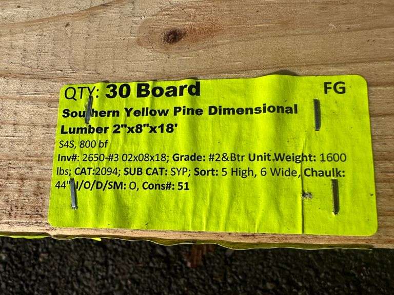 Southern Yellow Pine Dimensional Lumber 2"x8"x18'. S4S, 800 Board Foot, Grade: #2&btr, *Condition Notes: Mold, Splits/Cracks, Please See Photos* Weight: 1600. Sold by: Board. Sold as: Price x Quantity.