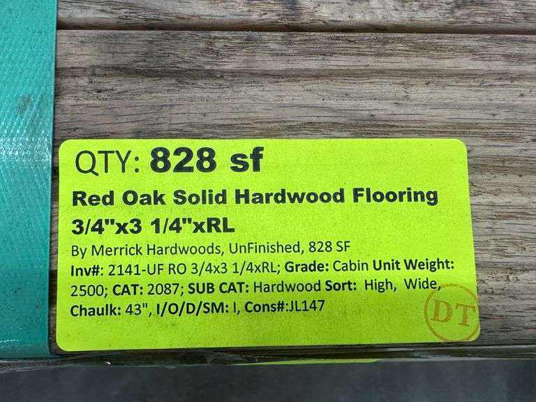 Red Oak Solid Hardwood Flooring 3/4"x3 1/4"xRL. By Merrick Hardwoods, Unfinished, 828 Square Foot, Grade: Cabin Weight: 2500. Sold by: Square Foot. Sold as: Price x Quantity.