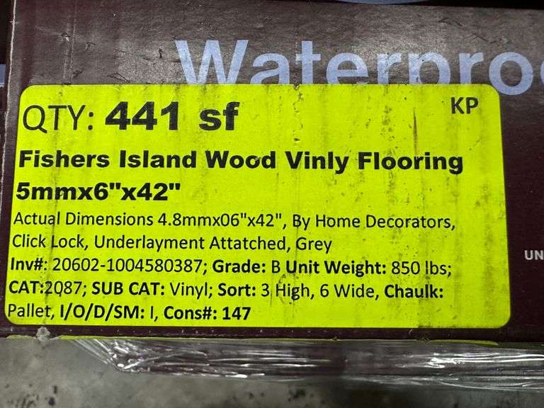 Fishers Island Wood Vinyl Flooring 5mmx6"x42". Actual Dimensions 4.8mmx06"x42", By Home Decorators, Click Lock, Underlayment Attached, Grey, Grade: B Weight: 850. Sold by: Piece. Sold as: Price x Quantity.