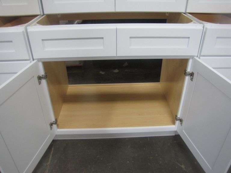 Arcadia White Kitchen Cabinet Set 10'x15'. Deluxe Layout, 30" Walls, By GHI, Additional pieces may be available for order to the high bidder. Additional cabinets ship boxed, ready to assemble. -3/4” Solid Wood Face Frame -High Density Fiberboard Shaker Style Door and Drawer Front -1/2” Plywood Box Construction -5/8” Plywood Shelves -Full Overlay Doors and Drawer Fronts -Solid Wood Dovetail Drawer box -Soft Close Full Extension Drawer Gliders -Soft Close Doors -6-Way Adjustable Concealed Hinges -Additional Wall Cabinets Available in the Following Sizes; 30”, 36”, and 42”; if you would like a different size that what this cabinet is listed as please call our office at 607-865-6951 for a quote. Enclosed in each cabinet set will be a Build Sheet which lists the individual cabinets in each set. As the cabinets are palletized each cabinet will be checked off and signed by our staff member to ensure that the set is complete at the time of pick-up. Please keep this Build Sheet on hand because it will be required if there is an issue with your cabinet set. Cabinet issues will not be addressed without this build sheet. Weight: x. Sold by: Set. Sold as: Price x Quantity.