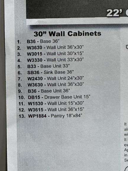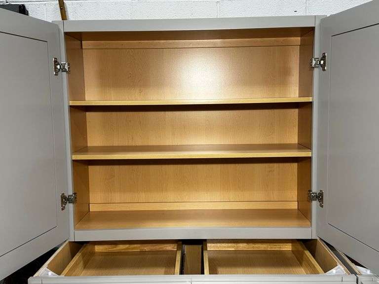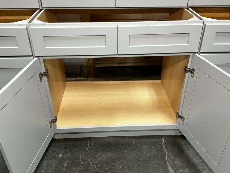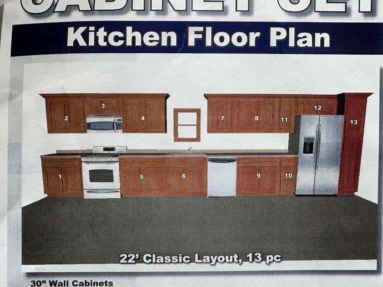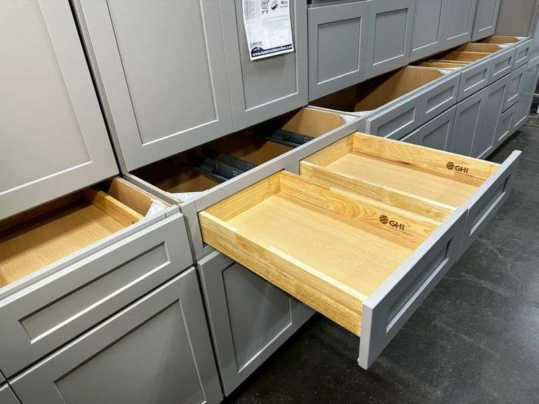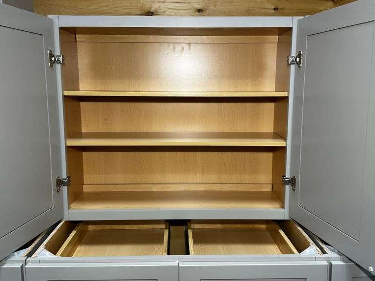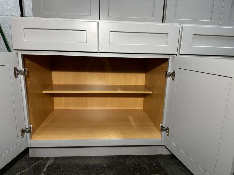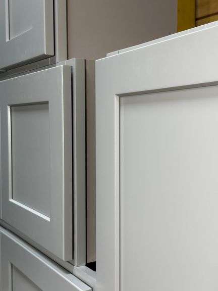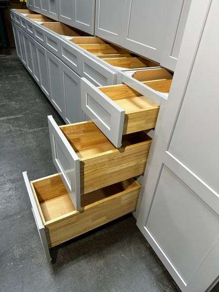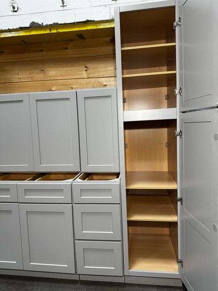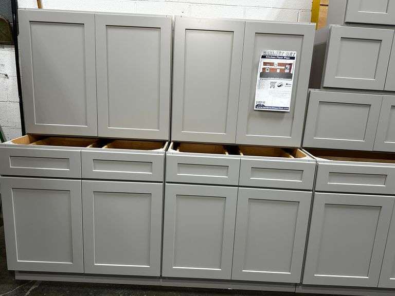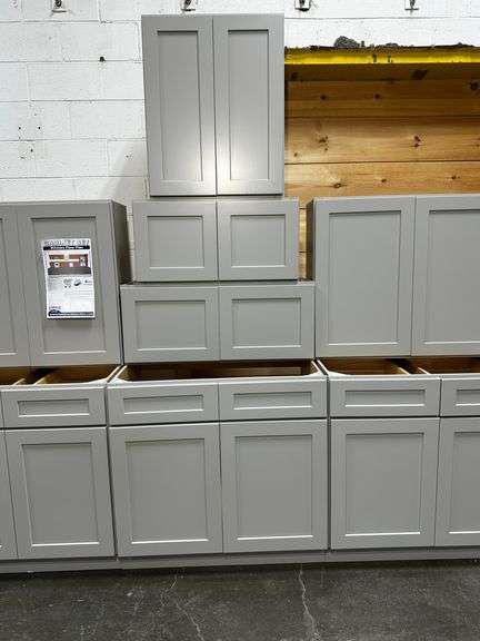 Stone Habor Gray Kitchen Cabinet Set 22'. Classic Layout, 30" Walls, By GHI, Additional pieces may be available for order to the high bidder. Additional cabinets ship boxed, ready to assemble. -3/4” Solid Wood Face Frame -High Density Fiberboard Shaker Style Door and Drawer Front -1/2” Plywood Box Construction -5/8” Plywood Shelves -Full Overlay Doors and Drawer Fronts -Solid Wood Dovetail Drawer box -Soft Close Full Extension Drawer Gliders -Soft Close Doors -6-Way Adjustable Concealed Hinges -Additional Wall Cabinets Available in the Following Sizes; 30”, 36”, and 42”; if you would like a different size that what this cabinet is listed as please call our office at 607-865-6951 for a quote. Enclosed in each cabinet set will be a Build Sheet which lists the individual cabinets in each set. As the cabinets are palletized each cabinet will be checked off and signed by our staff member to ensure that the set is complete at the time of pick-up. Please keep this Build Sheet on hand because it will be required if there is an issue with your cabinet set. Cabinet issues will not be addressed without this build sheet. Weight: x. Sold by: Set. Sold as: Price x Quantity.