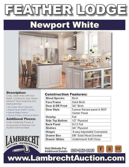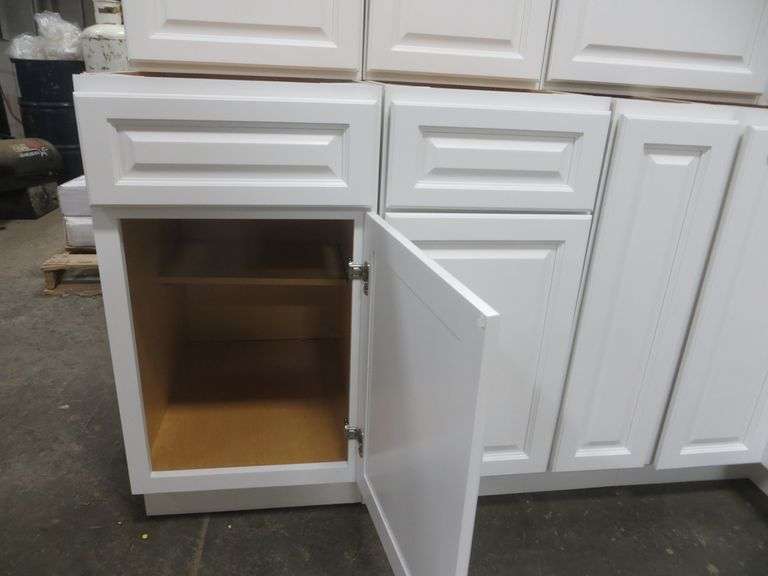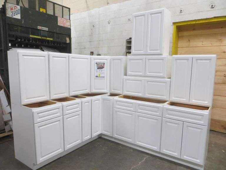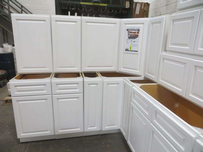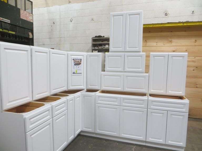 Newport White Kitchen Cabinet Set 10'x12'. Standard Layout, 30" Walls, By GHI, Additional pieces may be available for order to the high bidder. Additional cabinets ship boxed, ready to assemble. -3/4” Solid Wood Face Frame -3/4" HDF 5-pcs Door & Drawer Front -Full Overlay and 1/2" raised Panel -1/2” Plywood Box Construction -3/4” Plywood Shelves -Natural Interior -6-Way Adjustable Concealed Soft Close Door Hinges -5 Piece Drawer Front -5/8” Thick Solid Wood Dovetail Drawer Box -Undermount Full Extension Soft Close Drawer Glides. Cabinet Assembly Option is NOT Available on this kitchen cabinet set, it IS NOT assembled. This set will be unassembled and there are no assembly options. Enclosed in each cabinet set will be a Build Sheet which lists the individual cabinets in each set. As the cabinets are palletized each cabinet will be checked off and signed by our staff member to ensure that the set is complete at the time of pick-up. Please keep this Build Sheet on hand because it will be required if there is an issue with your cabinet set. Cabinet issues will not be addressed without this build sheet. Weight: x. Sold by: Set. Sold as: Price x Quantity.