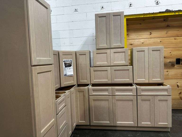 Sonona Wheat Kitchen Cabinet Set 10'x12'. Classic Layout, 30" Walls, By GHI, Designed for superior durability and functionality, these cabinets feature solid hardwood face frames with mortise and tenon construction, reinforced with glue and nails for exceptional stability. Thick multi-ply hardwood plywood tops, bottoms, and end panels are precisely added into the face frame, ensuring a secure and seamless fit. The adjustable shelves, crafted from edge-banded multi-ply hardwood plywood, exceed industry standards, while the sturdy back panels are routed, glued, and nailed for enhanced durability. 6mm fluted metal shelf clips provide secure, adjustable shelving in 2-inch increments. The solid hardwood shaker-style doors are fitted with 110-degree full overlay concealed hinges, featuring soft-closing dampers for smooth, silent operation. Dovetail-constructed drawer boxes, made from solid hardwood with plywood bottoms, are paired with soft-closing undermount full-extension glides, ensuring effortless functionality. Wood base corner brackets and solid hardwood hanging strips further reinforce the structural integrity of these cabinets. Enclosed in each cabinet set will be a Build Sheet which lists the individual cabinets in each set. As the cabinets are palletized each cabinet will be checked off and signed by our staff member to ensure that the set is complete at the time of pick-up. Please keep this Build Sheet on hand because it will be required if there is an issue with your cabinet set. Cabinet issues will not be addressed without this build sheet. Weight: x. Sold by: Set. Sold as: Price x Quantity.
