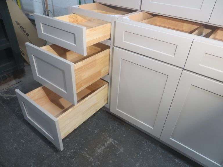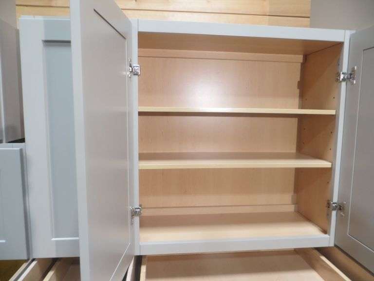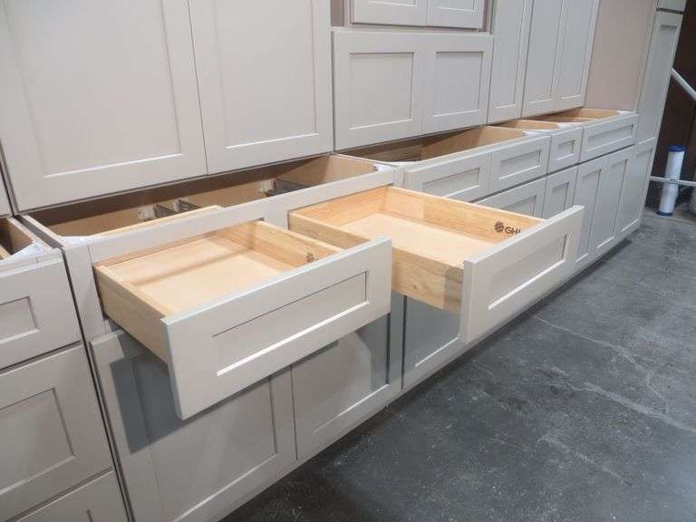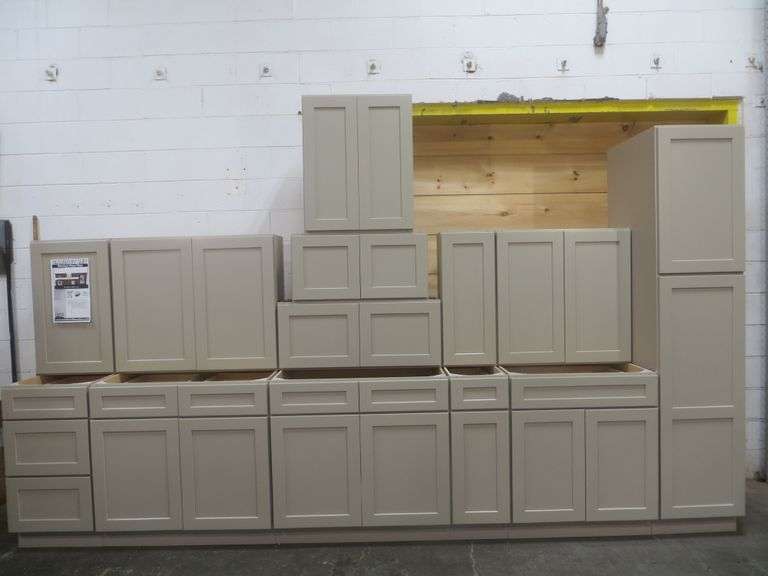 Mojave Shaker Kitchen Cabinet Set 20'. Classic Layout, 30" Walls, By GHI, Additional pieces may be available for order to the high bidder. Additional cabinets ship boxed, ready to assemble. -3/4” Solid Wood Face Frame -High Density Fiberboard Shaker Style Door and Drawer Front -1/2” Plywood Box Construction -5/8” Plywood Shelves -Full Overlay Doors and Drawer Fronts -Solid Wood Dovetail Drawer box -Soft Close Full Extension Drawer Gliders -Soft Close Doors -6-Way Adjustable Concealed Hinges -Additional Wall Cabinets Available in the Following Sizes; 30”, 36”, and 42”; if you would like a different size that what this cabinet is listed as please call our office at 607-865-6951 for a quote. Cabinet Assembly Option is NOT Available on this kitchen cabinet set, it IS NOT assembled. This set will be unassembled and there are no assembly options. Enclosed in each cabinet set will be a Build Sheet which lists the individual cabinets in each set. As the cabinets are palletized each cabinet will be checked off and signed by our staff member to ensure that the set is complete at the time of pick-up. Please keep this Build Sheet on hand because it will be required if there is an issue with your cabinet set. Cabinet issues will not be addressed without this build sheet. Weight: x. Sold by: Set. Sold as: Price x Quantity.
