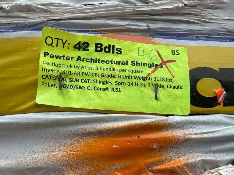 Pewter Architectural Shingles. Castlebrook by Atlas, Grade: B. Weight: X. Sold by: Bundle. Sold as: Price x Quantity.