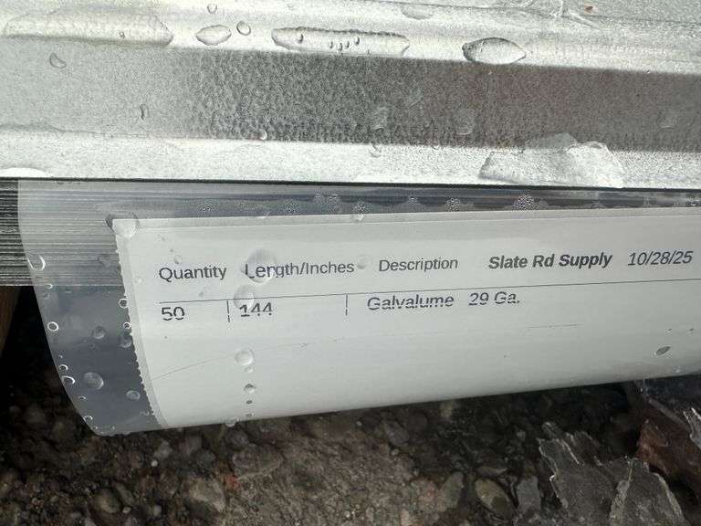 Galvalume Metal Panel 3'x12'. 29 Gauge, 50 Pieces, Grade: B. Metal can be labeled as "B Grade" for many reasons. Some may include possible paint imperfections such as; off colors, light or heavy coating, dirt in paint, paint splash or blisters. They may contain steel imperfections such as; creases, wrinkles, wavy edges, dents, or general handling damage. When bidding on Grade B metal panels please don't assume that any two lots are the same. If you want to buy more than one (1) lot and need the same color please call us at 607-865-6951 to have us inspect the lots before you purchase. Weight: 1290. Sold by: Linear Foot. Sold as: Price x Quantity.