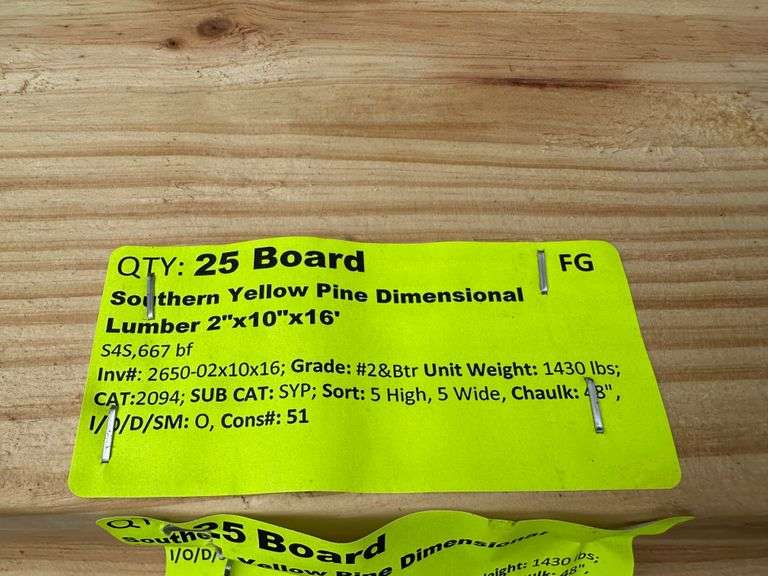 Southern Yellow Pine Dimensional Lumber 2"x10"x16'. S4S, 667 board foot, Grade: #2&Btr. Weight: 1430. Sold by: Board. Sold as: Price x Quantity.