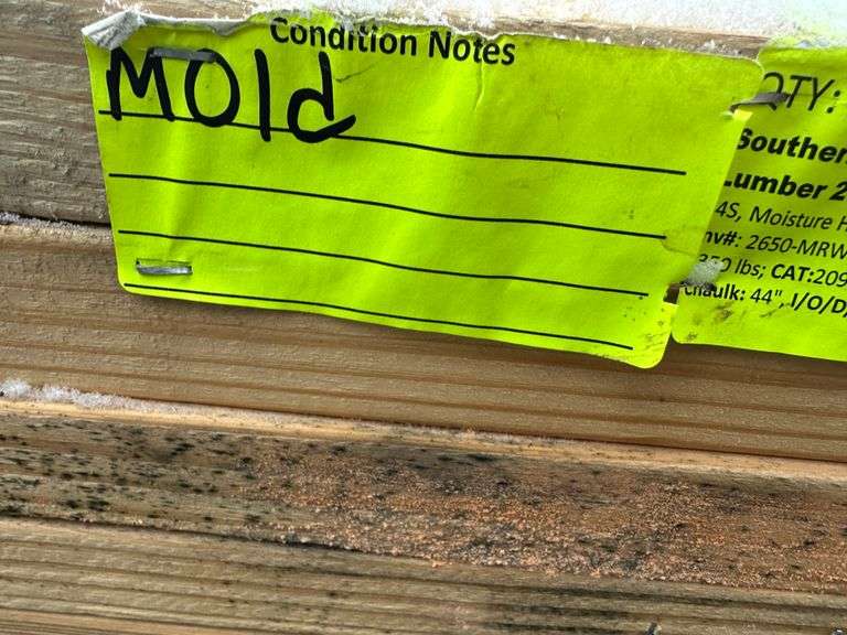 Southern Yellow Pine MRW Dimensional Lumber 2"x4"x16'. S4S, Moisture Higher Than 19%, Mix of #2, #3, #4, Grade: Kiln Wet, *Condition Notes: Mold, Please See Photos* Weight: 1350. Sold by: Board. Sold as: Price x Quantity.