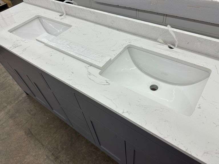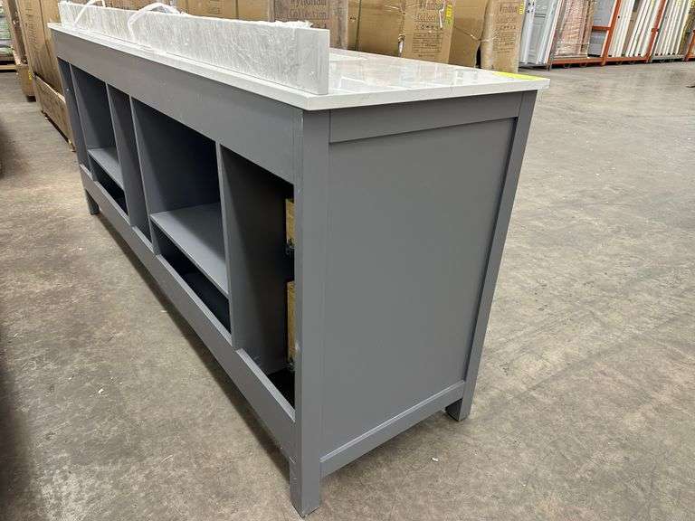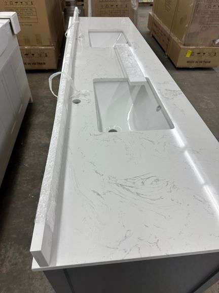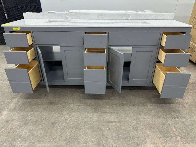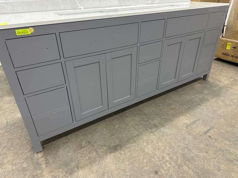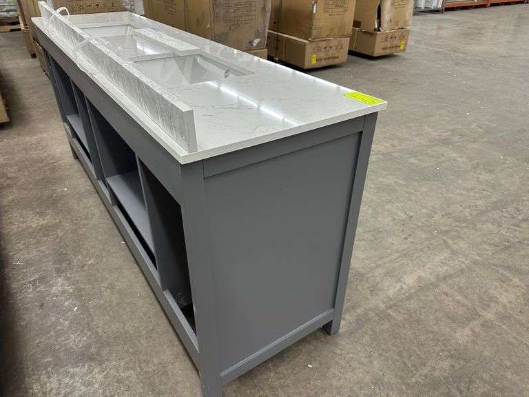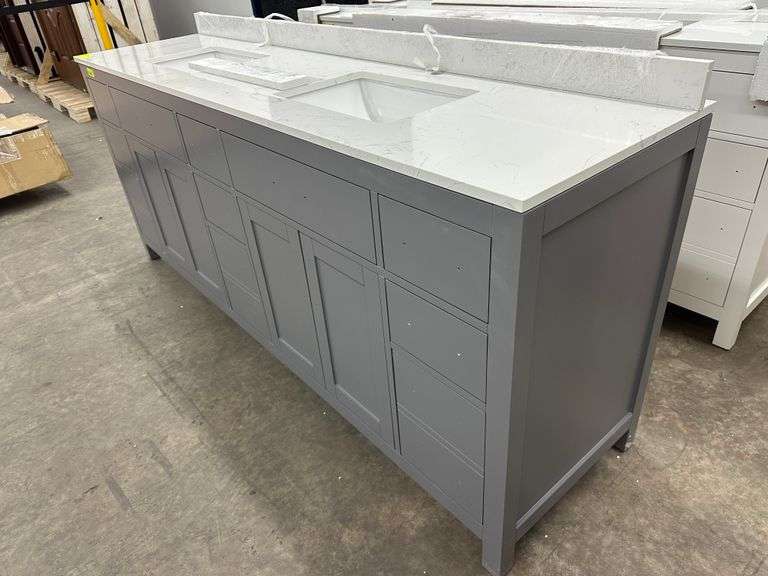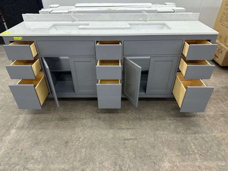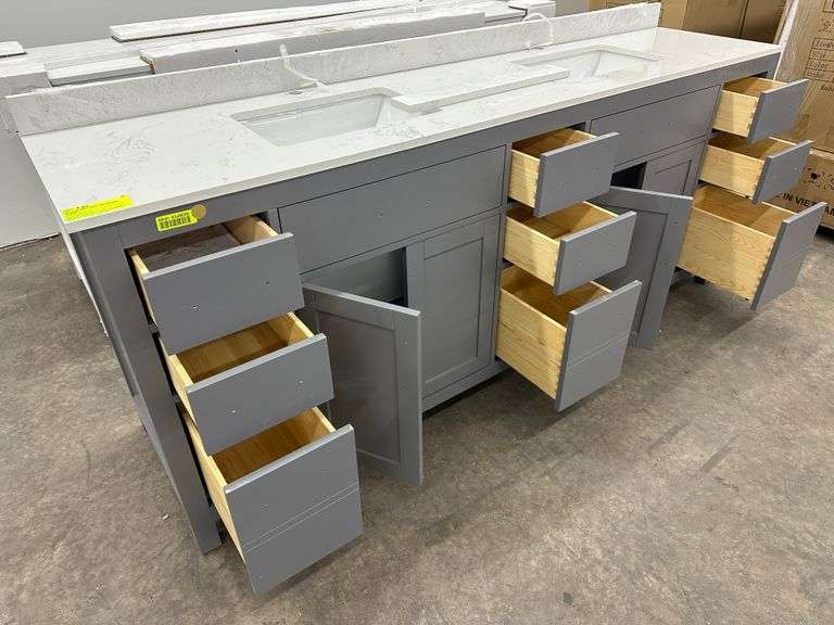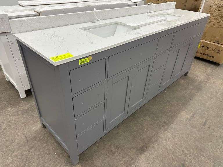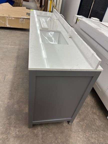 Miranda Dark Gray 84" Double Vanity. Windham Collection, With Cultured Marble Top, Actual Dimensions: 84"x21.5"x33", Does Not Include Hardware, Grade: A Weight: 500. Sold by: Piece. Sold as: Price x Quantity.