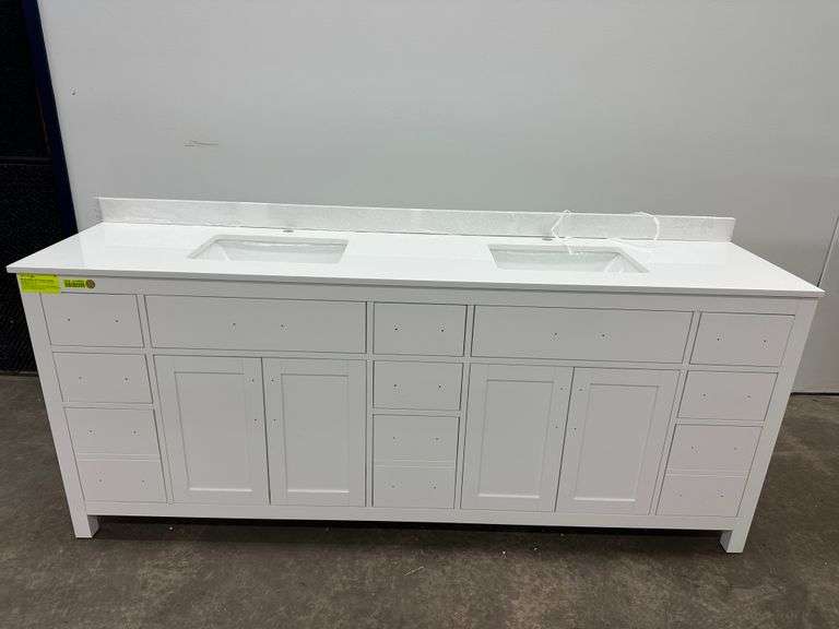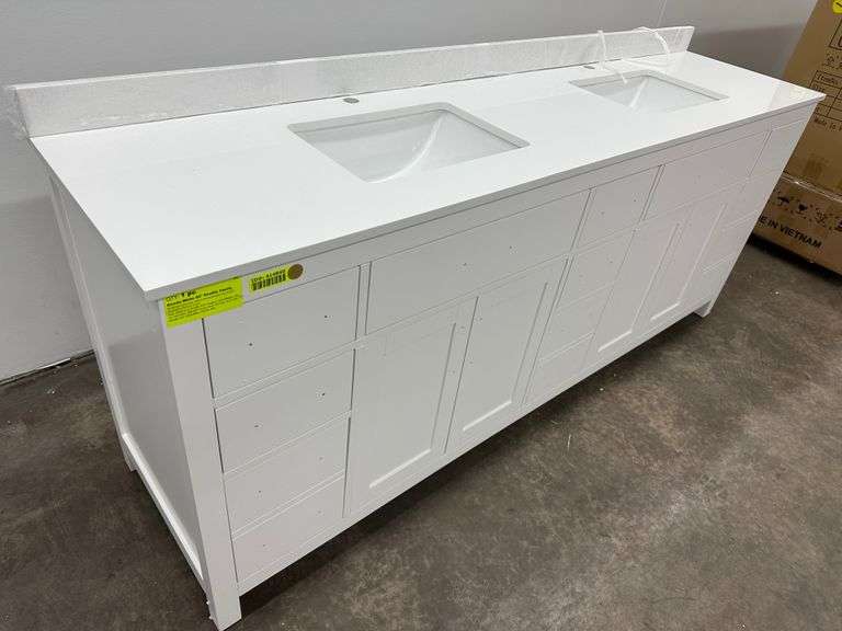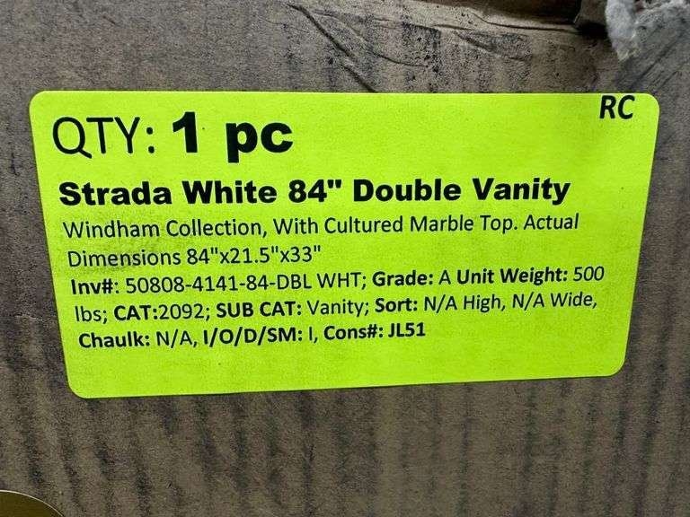 Strada White 84" Double Vanity. Windham Collection, With Cultured Marble, Top Actual Dimensions: 84"x21.5"x33", Does Not Include Hardware, Grade: A Weight: 500. Sold by: Piece. Sold as: Price x Quantity.
