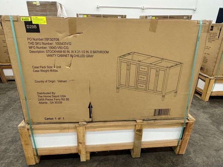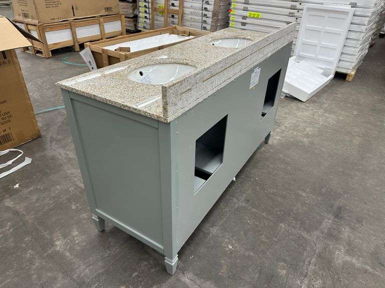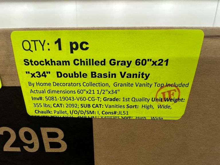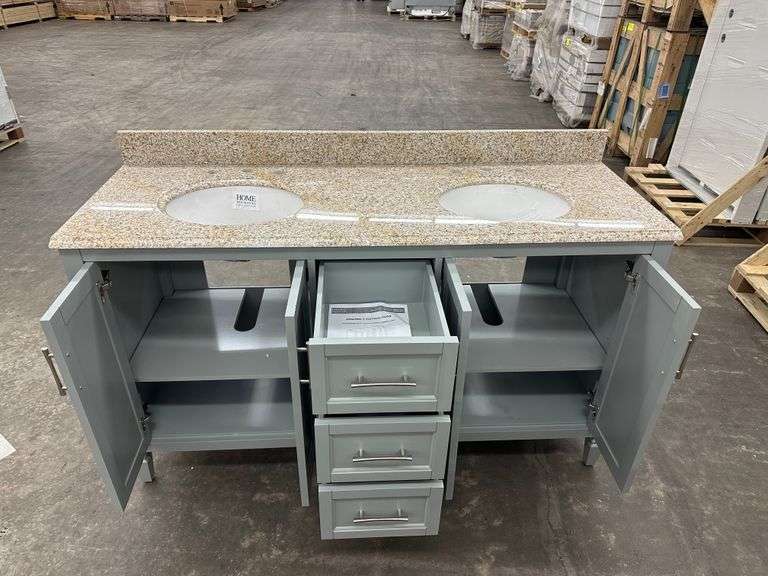 Stockham Chilled Gray 60"x21"x34" Double Basin Vanity. By Home Decorators Collection, Granite Vanity Top Included Actual Dimensions 60"x21 1/2"x34", Grade: 1st Quality Weight: 355. Sold by: Piece. Sold as: Price x Quantity.