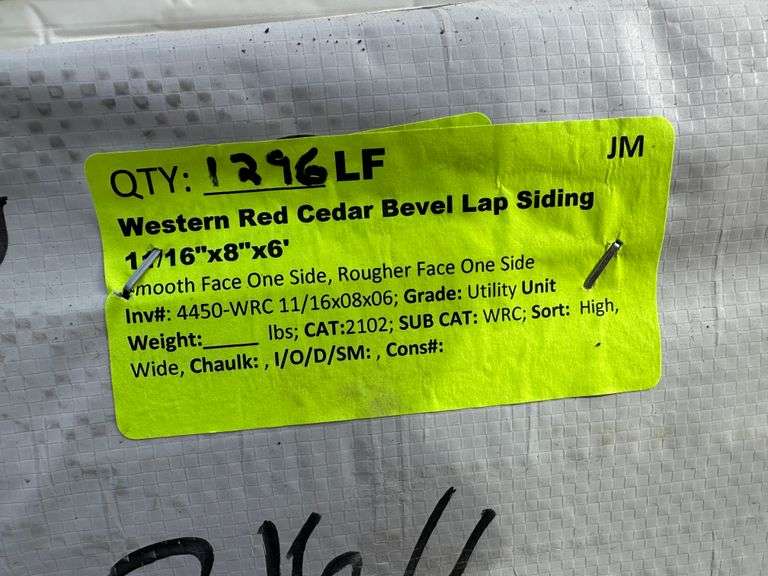 Western Red Cedar Bevel Lap Siding 11/16"x8"x6'. Smooth Face One Side, Rougher Face One Side, 216 Pieces, Grade: Utility Weight: x. Sold by: Linear Foot. Sold as: Price x Quantity.