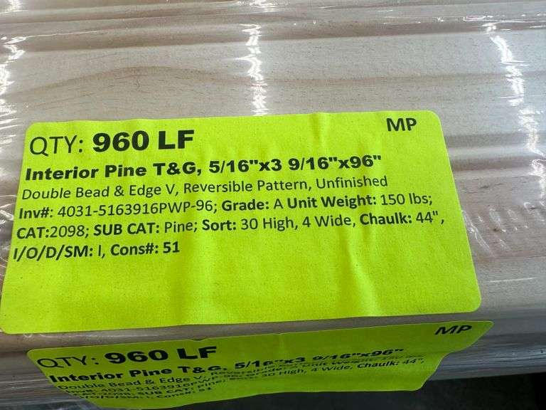 Interior Pine T&G 5/16"x3 9/16"x96". Double Bead & Edge V, Reversible Pattern, Unfinished Grade: A Weight: 150. Sold by: Linear Foot. Sold as: Price x Quantity.