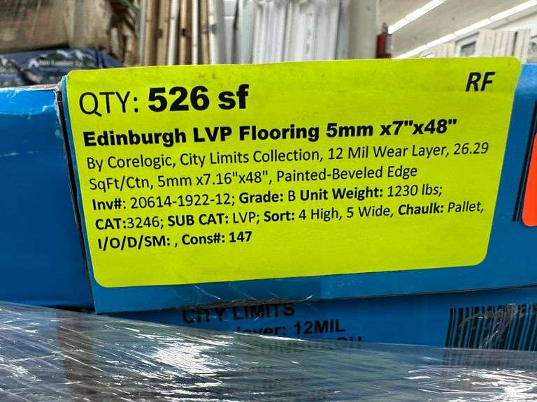Edinburgh LVP Flooring 5mm x7"x48". By CoreLogic, City Limits Collection, 12 Mil Wear Layer, 26.29 Square Foot/Container, 5mm x7.16"x48", Painted-Beveled Edge, Grade: B Weight: 1230. Sold by: Square Foot. Sold as: Price x Quantity.