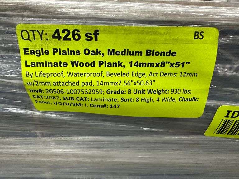 Eagle Plains Oak Medium Blonde Laminate Wood Plank 14MMx8"x51". By Lifeproof, Waterproof, Beveled Edge, Actual Dimensions: 12mm with 2mm Attached Pad, 14MMx7.56"x50.63" Grade: B Weight: 930. Sold by: Square Foot. Sold as: Price x Quantity.