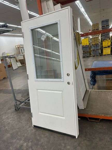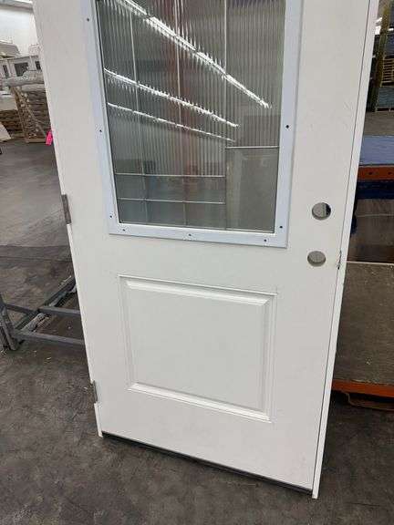 Fiberglass Decorative Entrance Door 36"x80" Right Hand. 22"x36" Decorative Glass, Actual Size: 37 1/4"x81", 4 9/16", Pre Hung, Grade: B Weight: x. Sold by: Door. Sold as: Price x Quantity.