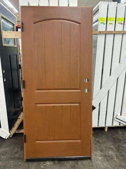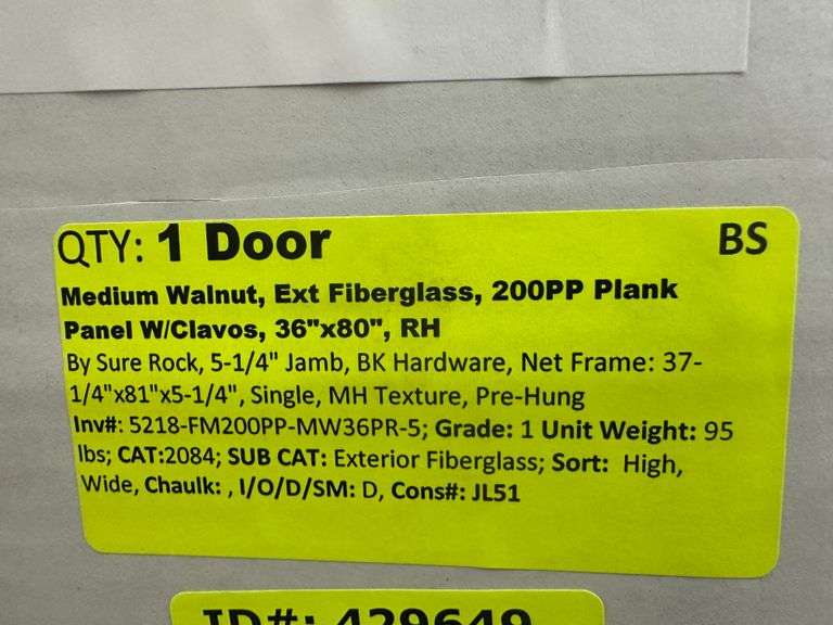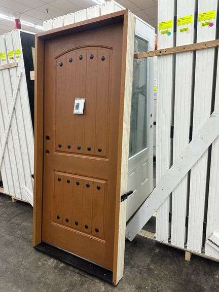 Medium Walnut, Exterior Fiberglass, 200 PP Plank Pannel W/Clavos, 36"x80", RH. By Sure Rock, 5-1/4" Jamb, BK Hardware, Net Frame: 37-1/4"x81"x5-1/4", Single, MH Texture, Pre-Hung, Grade: 1 Weight: 95. Sold by: Door. Sold as: Price x Quantity.