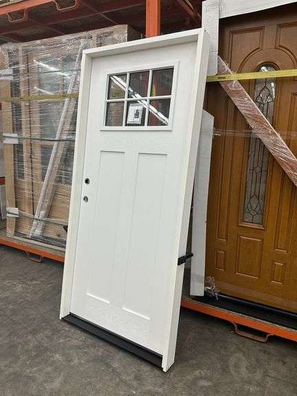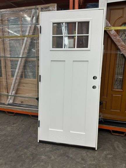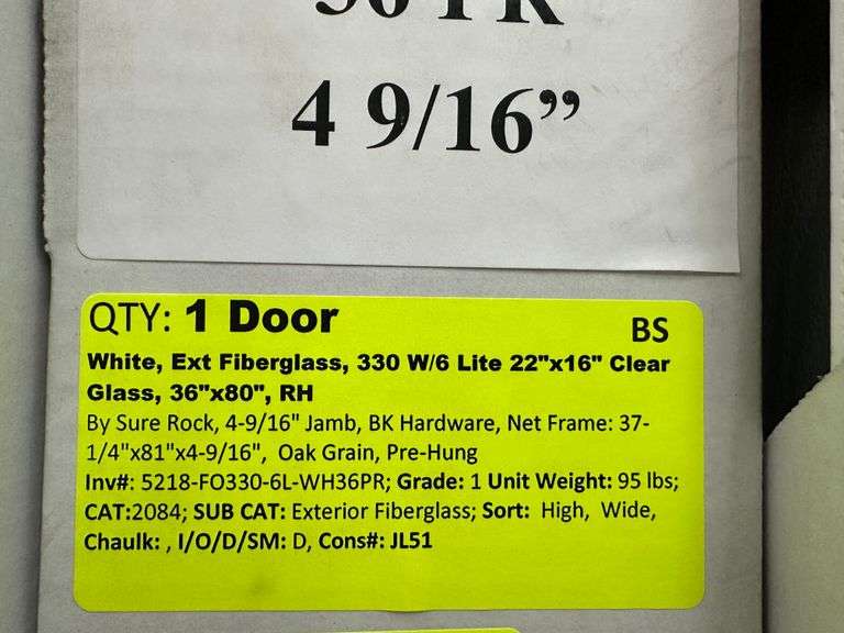 White Exterior Fiberglass 330 With 6 Lites 22"x16" Clear Glass 36"x80" Right Hand. By: Sure Rock, 4-9/16" Jamb, BK Hardware, Net Frame: 37-1/4"x81"x4-9/16", Oak Grain, Pre-Hung, Grade: 1 Weight: . Sold by: Door. Sold as: Price x Quantity.