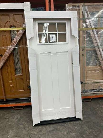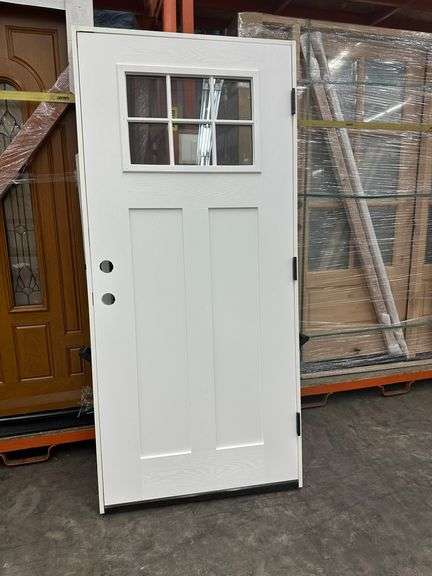 White Exterior Fiberglass 330 With 6 Lites 22"x16" Clear Glass 36"x80" Left Hand. By: Sure Rock, 4-9/16" Jamb, BK Hardware, Net Frame: 37-1/4"x81"x4-9/16", Oak Grain, Pre-Hung, Grade: 1 Weight: . Sold by: Door. Sold as: Price x Quantity.