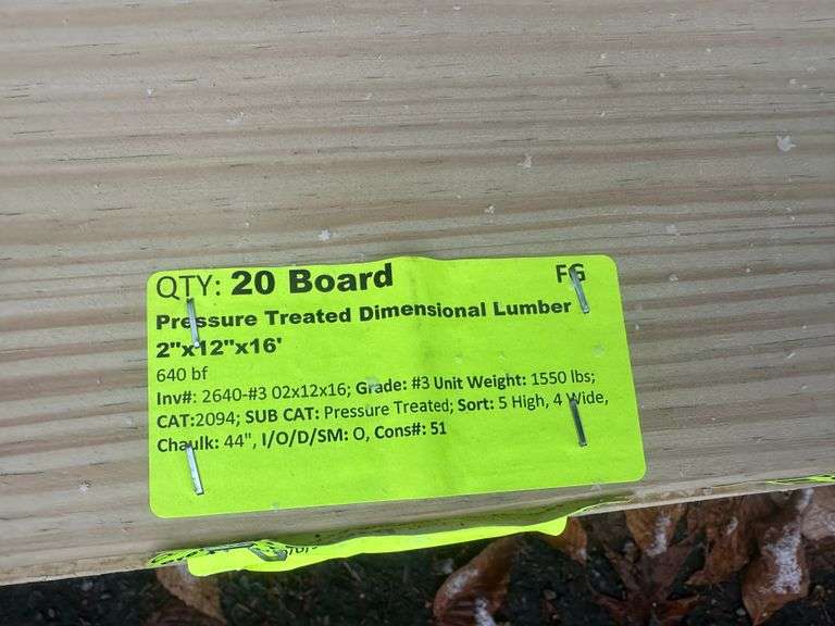 Pressure Treated Dimensional Lumber 2"x12"x16'. 640 Board Foot, Grade: #3 Weight: 1550. Sold by: Board. Sold as: Price x Quantity.