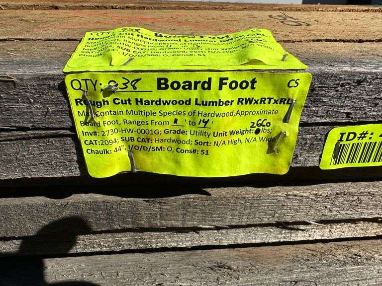 Rough Cut Hardwood Lumber RWxRTxRL (Longest Board 14'). May Contain Multiple Species OF Hardwood, Approximate Board Foot, Ranges From 11' to 14', Grade: Utility Weight: 2660. Sold by: Board Foot. Sold as: Price x Quantity.